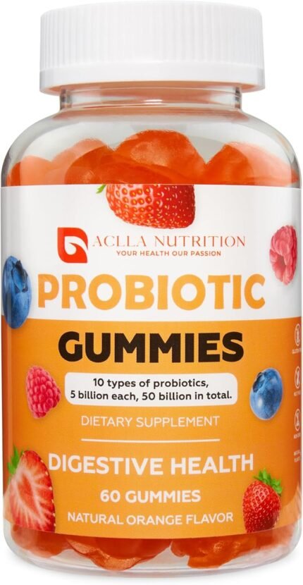 Aclla Wellness Probiotic Gummies – 50 Billion CFU, 10 Probiotic Strains – Gut Health & Immunity Support – Gluten-Free, Vegan, Non-GMO – Orange Flavor, 60 Count