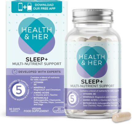 Health & Her Sleep+ Supplements for Women – 1 Month Supply, 30 Capsules – Women’s Multivitamin with Lavender, Chamomile & Magnesium – Vegan, Gluten-Free