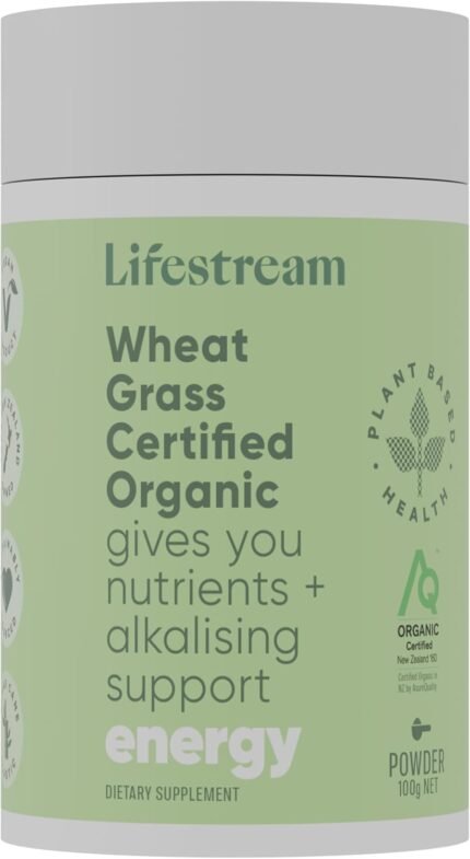 Lifestream Wheatgrass Powder Certified Organic Alkalising Green Superfood High in Vitamins Minerals and Chlorophyll for Detox and Energy Support Vegan 100 Grams