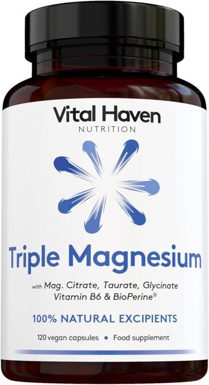 Magnesium Supplement – Citrate + Glycinate + Taurate and Vitamin B6 with BioPerine – UK Made
