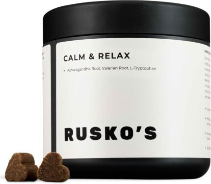 Rusko’s® Dog Calming Supplement Chews | Stress, Barking & Anxiety Relief for Dogs | With Ashwagandha Root, Valerian Root & L-Tryptophan | 120 Cold-Pressed Soft Chews