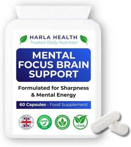 Mental Focus & Brain Support Supplement – 60 Vegan Capsules (30-Day Supply) | Clarity, Concentration, Memory & Cognitive Support | UK Made, GMP Certified