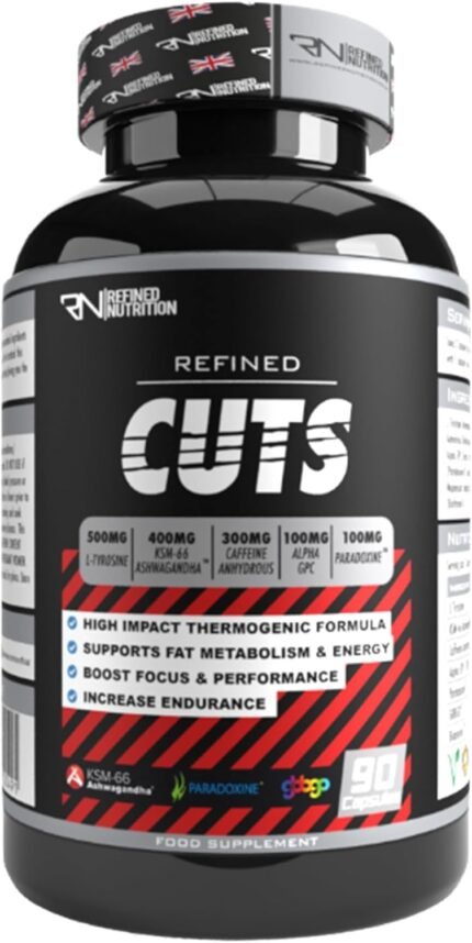 Refined Cuts Thermogenic Fat Burner Capsules (30 Days Supply) – 90 Vegan Capsules for Weight Loss, Metabolism Booster & Appetite Control with KSM-66 Ashwagandha & Caffeine, Energy & Focus Support