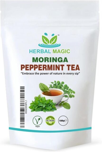 Herbal Magic 100% Pure & Natural Cooling Moringa Peppermint Tea: A Soothing Blend for Wellness and Refreshment, Rich in Vitamins, Minerals & antioxidants Free from Artificial Additives_100g