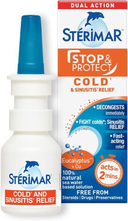 Sterimar Stop and Protect Cold and Sinusitis Relief, 100% Natural Sea Water Nasal Spray with Copper and Eucalyptus, 20 ml