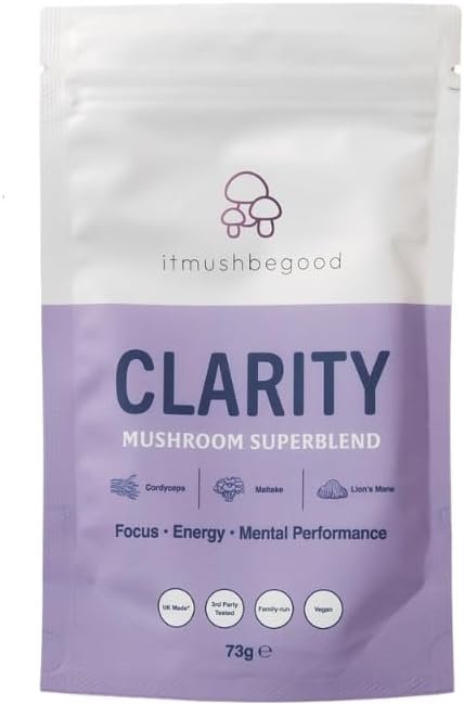 Clarity Superblend Powder, / Mushroom Complex with B Vitamins / 2400mg Lions Mane, Cordyceps & Maitake Extract per dose/Focus, Energy & Mental Performance