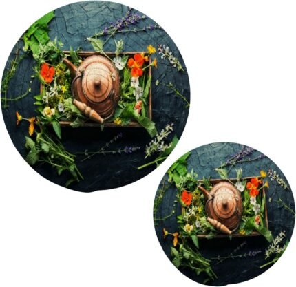 Kitchen Pot Holders Set 2 Pcs Healing Herbs Set Cotton Thread Weave Trivets Set Stylish Coasters for Hot Dishes Pot Bowl Coffee Hot Pot Holders Natural Herbs Medicine