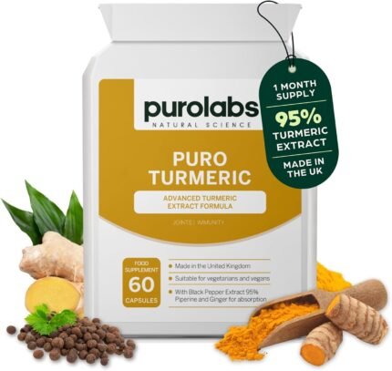 Purolabs Turmeric and Black Pepper Capsules (High Strength) – 95% Curcumin Extract Tablets with Ginger for Men & Women | 60 Vegan Capsules | Made in The UK