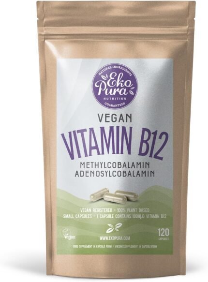 Vegan Vitamin B12 Methyl- & Adenosylcobalamin – 120 Small Capsules (1000mcg)|Free from Allergens, GMO, Soy, Gluten, Unhealthy additives | 4 Months Supply (1 Capsule Per Day)