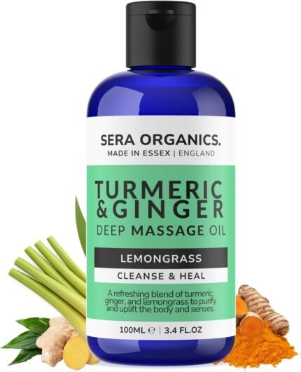Turmeric Massage Oil – Arthritis Relief & Muscle Pain | Anti-Inflammatory, Lymphatic Drainage, Joint & Nerve Soothing, Sleep Support | Ginger & Lemongrass for Deep Tissue Massage | Sera Organics 100ml