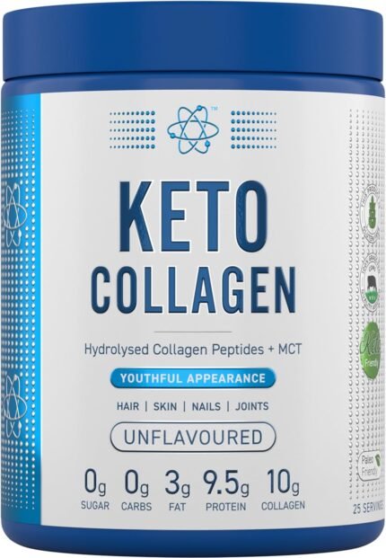 Applied Nutrition Keto Collagen Protein – Keto Protein Powder with MCT, Ketogenic & Paleo Diet, Zero Sugar & Carbs, Healthy Skin, Hair, Nails (Unflavoured) (325g – 25 Servings)