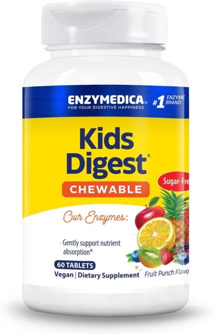 ENZYMEDICA – Kids Digest (60 Chewable Tablets) | Fruit Punch Flavour | Digestive Enzymes Supplement | Digestive Enzyme Blend for Children, Nutrient Supplement, Gut Health Supplement, Vegan, Dairy Free