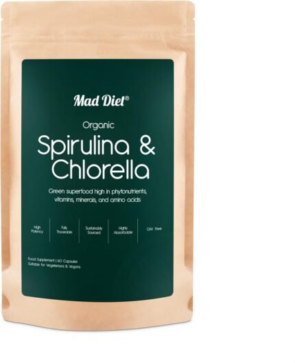 Organic Spirulina & Chlorella Detox – 60 Capsules – Supports Detoxification & Energy Boost – Promotes Immune & Digestive Health – Broken Cell Wall – Pure Formula Supplement with No Additives