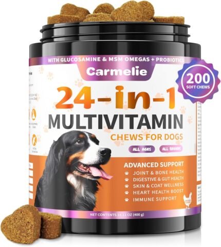 25-in-1 Multivitamin Supplements for Dogs – Multi-Vitamin Treats For Dogs Multivitamin Chewable Dog Vitamins For Heart,Skin,Coat,Natural Balance,Digestion for All Ages 200 Chews Chicken Flavor