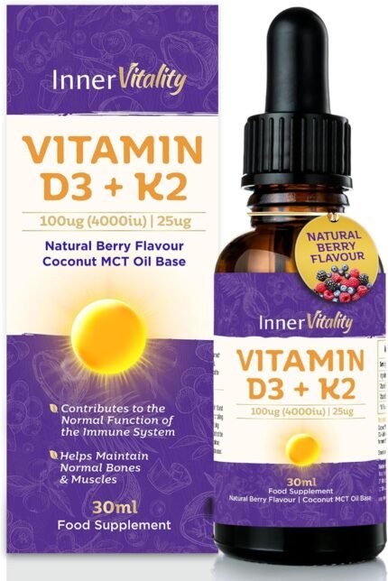 Vitamin D3 K2 Drops 4000iu Fast Absorbing MCT Oil for Immunity & Bones, 5-Month Supply High Strength Natural Berry Flavour Supplement for Adults & Kids 30ml