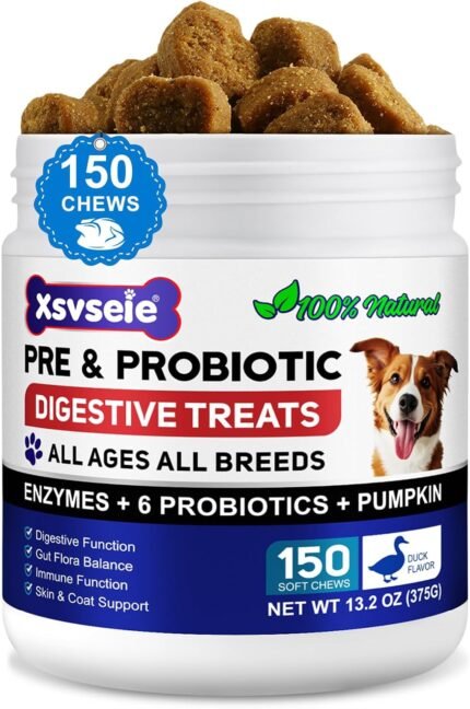 Probiotics for Dogs, 150Pcs Probiotics for Dogs Gut Health, Pre and Probiotic for Dog Digestive Health Support, Gut Health & Immunity, Duck Flavor