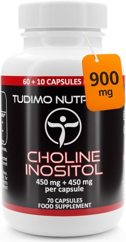 Choline + Inositol Supplement 900mg – Brain & Liver Support, Metabolism & Energy – 70 Vegan Easy-Swallow Capsules (2+ Month Supply) – Non-GMO, Gluten-Free