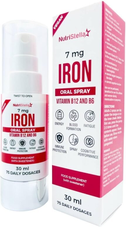 Iron Spray – Vitamin B12 – B6-75 Doses – Gentle on The Stomach – Less Side Effects – High Strength – Fast – Easy – Immunity – Combats Triedness and Fatigue – Sugar-Free