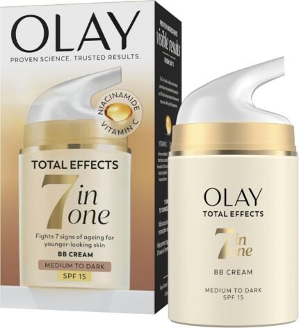Olay Total Effects SPF15 BB Day Face Cream, Medium to Dark 7-in-1 Skin Care Moisturiser Foundation with Vitamin C & Niacinamide Hydration, Glow and Anti-Wrinkle, Nourishes and Protects in 1 Step, 50ml