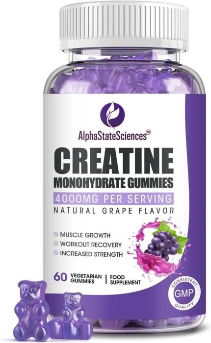 Creatine Gummies – 4000mg Creatine with Calcium, Magnesium & Potassium, Strength, Endurance & Muscle Growth Supplement (60 Gummies)