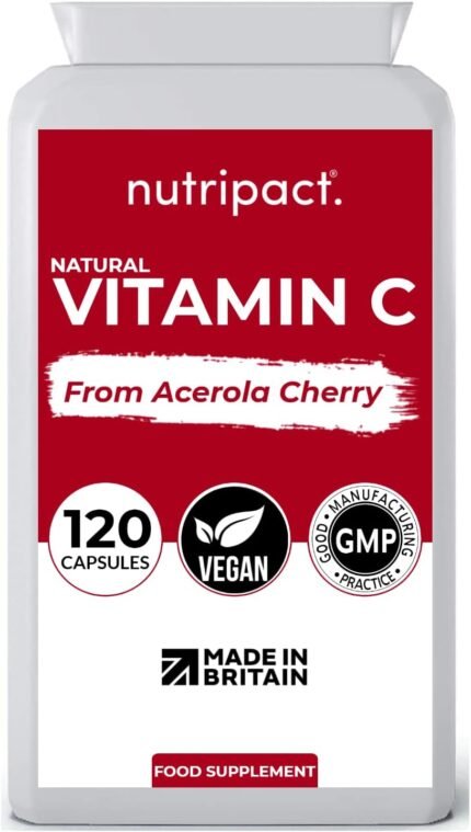 Acerola Cherry Extract 120 Vegan Capsules – Natural Vitamin C (Food Form) Complex – Enhanced with Rosehip, Elderberry, Parsley and Blackcurrant Extract – UK Made to The GMP Code of Practice