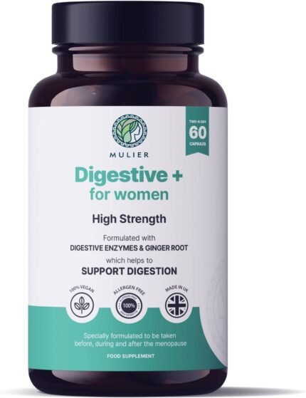 Mulier Menopause Bloating Relief, Digestive Enzyme Supplement, 10 Active Ingredients + Digestive Enzymes, Allergen Free & Vegan Friendly, 1 Month Supply, 60 Count, Gut Health