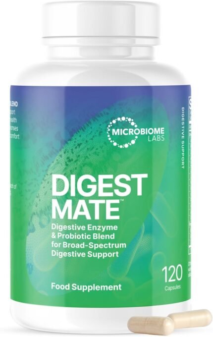 Microbiome Labs DigestMate – Digestive Enzyme Blend & Probiotics for Broad-Spectrum Gut Support, Spore Probiotic Supplement & 14 Enzymes for Complete Digestion – 120 Vegan Capsules