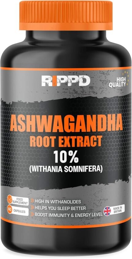 RIPPD Ashwagandha 500mg 60 Capsules | High Strength 20:1 Extract Equivalent to 10,000mg Root | Vegan Adaptogen Supplement for Stress, Sleep & Immunity Support