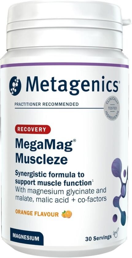 Metagenics MegaMag Muscleze Magnesium Glycinate Powder – Muscle Recovery After Exercise – Orange, 30 Servings