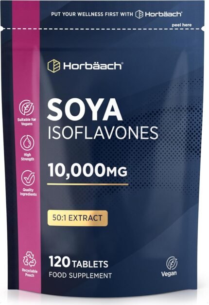SOYA Isoflavones 10,000mg | 120 Vegan Tablets | High Strength SOYA Bean Extract | Providing 80mg Isoflavones | by Horbaach
