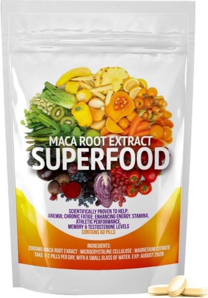 High Strength Maca Root Extract Pills for Men & Women | Natural Energy, Stamina & Performance Support | Vegan & Halal | 2000mg Per Serving | 60 Tablets | UK Made | Protein Superfood Tablets