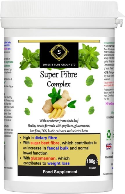 Super Fibre Complex High Fibre Psyllium Husk Glucommanan Sugar Beet Stevia Leaf Weight Loss Slimming Fat Burners Supplement Vegetarian Vegan Gluten Free Dairy Free 180g Powder
