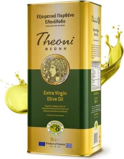 Theoni Extra Virgin Olive Oil 5 Litre Cold Pressed, Greek – Rich Flavour For Cooking, Salads, Dressings, Seasonings, BBQ’s, Pasta | Low Fat Cold Pressed Olive Oil Extra Virgin