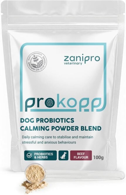 Dog Calming Supplements, Probiotics & L- tryphtophan Powder for Anxious Dog, Stress and Anxiety for Dogs Support, Fireworks, Car Travel, Long Term Relaxation Treatment – Beef Flavour, 100g