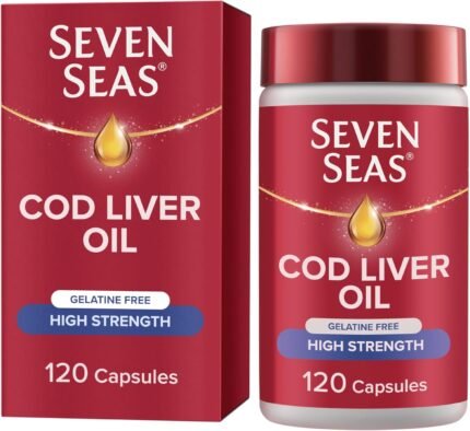 Seven Seas Cod Liver Oil High Strength Gelatine Free Omega-3 Fish Oil and Vitamin D, 120 Capsules