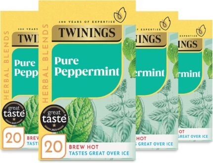 Twinings Pure Peppermint Flavoured Tea Bags – 80 Biodegradable Bags (Multipack of 4 x 20), Caffeine & Sugar Free Herbal Tea for Digestion & Refreshment, Natural Peppermint Flavor