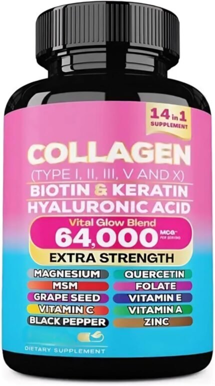 Collagen Complex | 1000mg Hydrolyzed Capsules | Skin | Hair | Nails | Joints | Hydrates & Smooths | with Hyaluronic Acid, Biotin, Zinc, Folate, Magnesium, Quercetin, Black Pepper & Vitamin A, C, & E