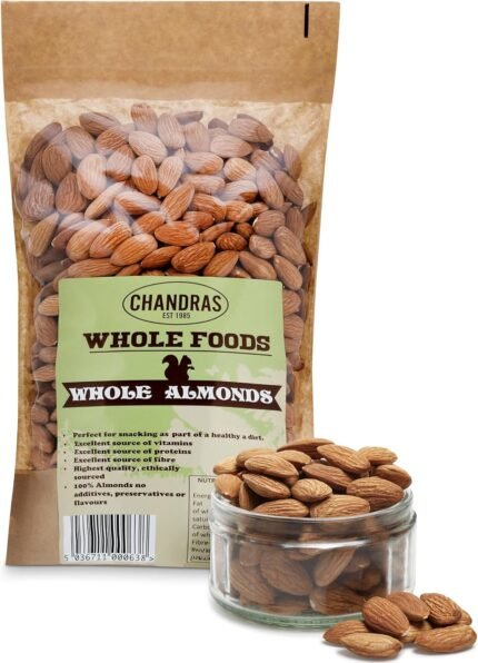 Chandra Whole Foods – Almonds 1KG – Low-GI Almonds for Snacking, Smoothies, Baking & Cooking – Gluten-Free, Keto & Vegan-Friendly, Rich in Protein & Vitamins & Fibre