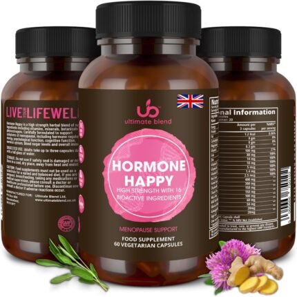 Hormone Happy Menopause Support Supplement | 60 Vegan Capsules | 16 Active Ingredients | High-Strength Daily Formula for Energy, Hormonal Balance & Immune Support | by Ultimate Blend