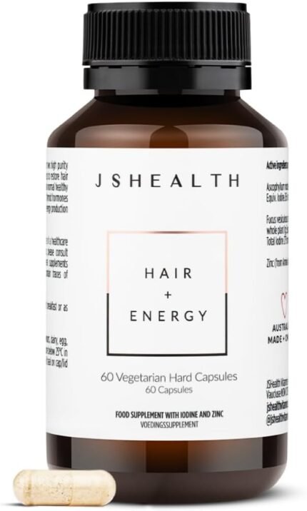JSHealth Vitamins Hair and Energy Formula, Hair Growth Supplement for Women and Men, Zinc and Iodine Capsules for Healthy Growth, Hair Loss Support, 60 Capsules