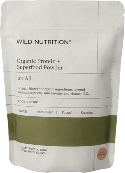 WILD NUTRITION Food-Grown® Vegan Protein Powder Super Food Blend | Organic Ingredients No Synthetics | Pea Protein, Sprirulina, Reishi, Chaga, Wheatgrass & More | Gluten Free
