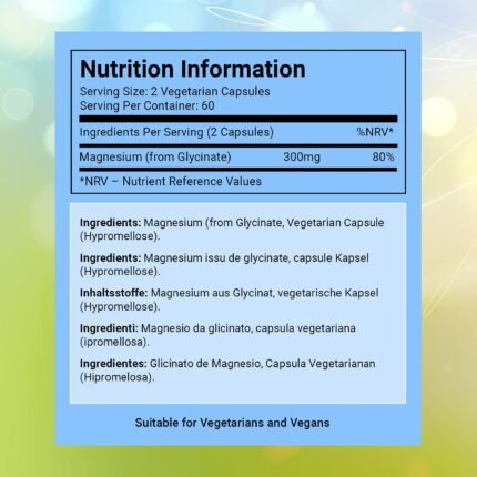 Magnesium Glycinate Capsules Provide 300 mg of Pure Elemental Magnesium Per Serving 120 Vegan Caps | Magnesium Supplement Non GMO, Dairy & Gluten Free