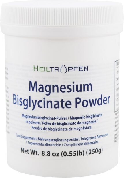 Magnesium glycinate as Magnesium bisglycinate | 0.55 lb – 250 g | Crystal Powder Soluble in Water | Third-Party Tested | Heiltropfen®
