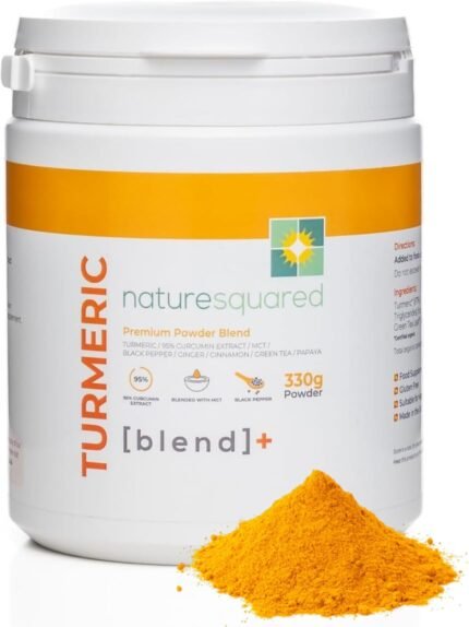 Nature Squared Turmeric Super [Blend] – Premium & Organic Turmeric (3933mg) Powder with 7 Active Ingredients – 330g(3 Month Supply) – Vegan – Non GMO – Gluten Free – GMP – Potent Antioxidant- UK Made
