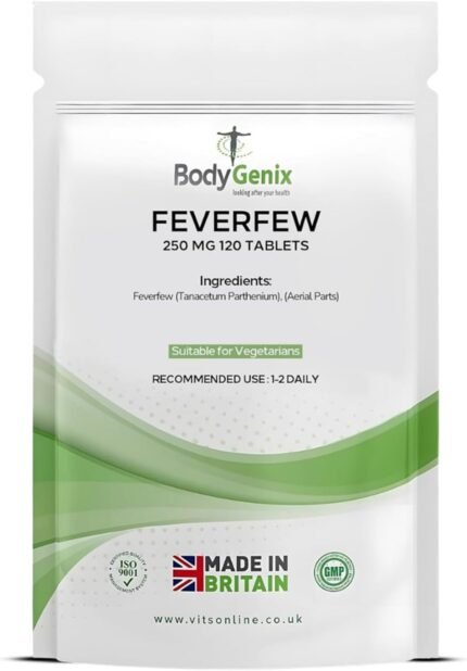 Feverfew 250mg Tablets – Migraine Headaches Relief Joints Health Anti Inflammatory Natural Supplement – 120 Tablets 4 Month Supply
