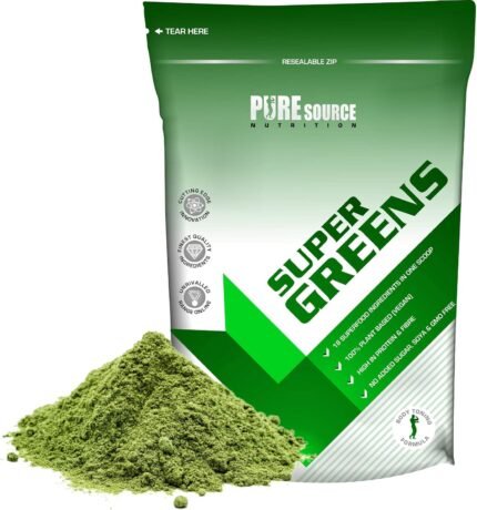 Pure Source Nutrition Vegan Super Greens Powder 18 Superfoods Supergreens Blend with Green Tea, Maca, Inulin, Wheat Grass, Alfalfa, Barley Grass, Moringa, Spirulina, Hemp Seed Powder (500 g)