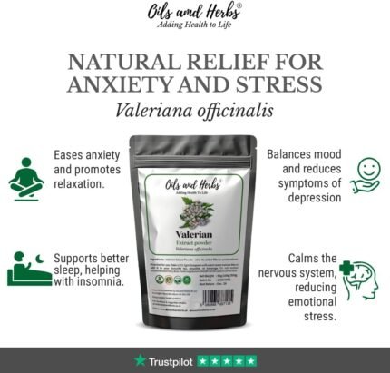 Organic Valerian Root Extract Powder by Oils and Herbs UK (10:1) High Strength – 100% Pure Free from Any Addictive or Sugar (50)
