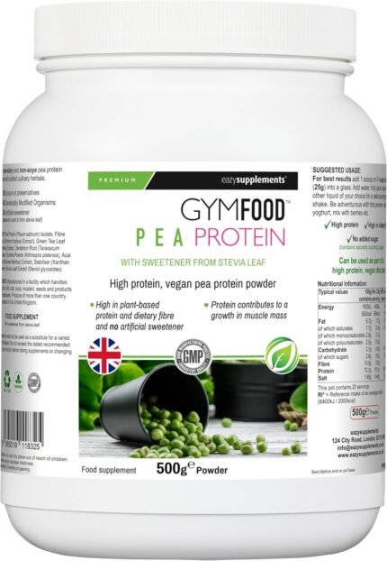 GYMFOOD Premium Pea Protein Powder, Blended with Other Nutrient-Dense superfoods and Herbs for Added antioxidants, Fibre and Phyto-nutrients – Chicory Root, Green Tea, Dandelion Root, spirulin