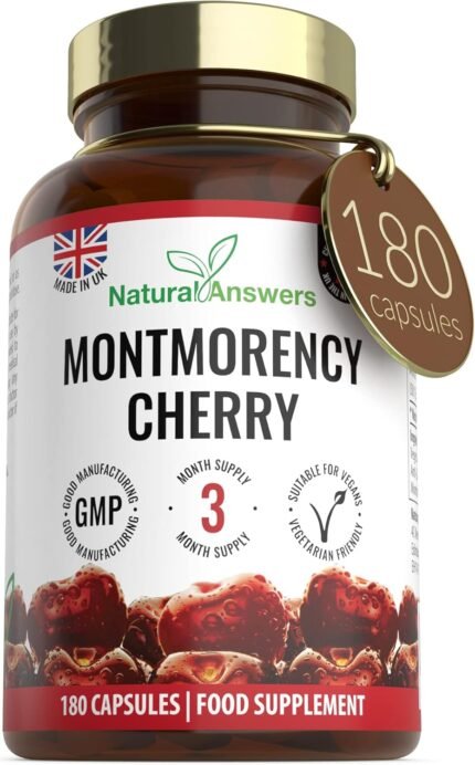 180 Montmorency Cherry Vegan Friendly Capsules, High Strength 1100mg Montmorency Cherries, UK Manufactured to GMP Standards by Natural Answers