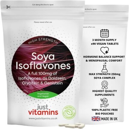 SOYA ISOFLAVONES 100mg | 90 Vegan Tablets | High Strength 250mg SOYA Complex | Supports Hormone Balance & Menopausal Comfort | Rich in Daidzin, Glycitin & Genistin | UK Made – Just Vitamins